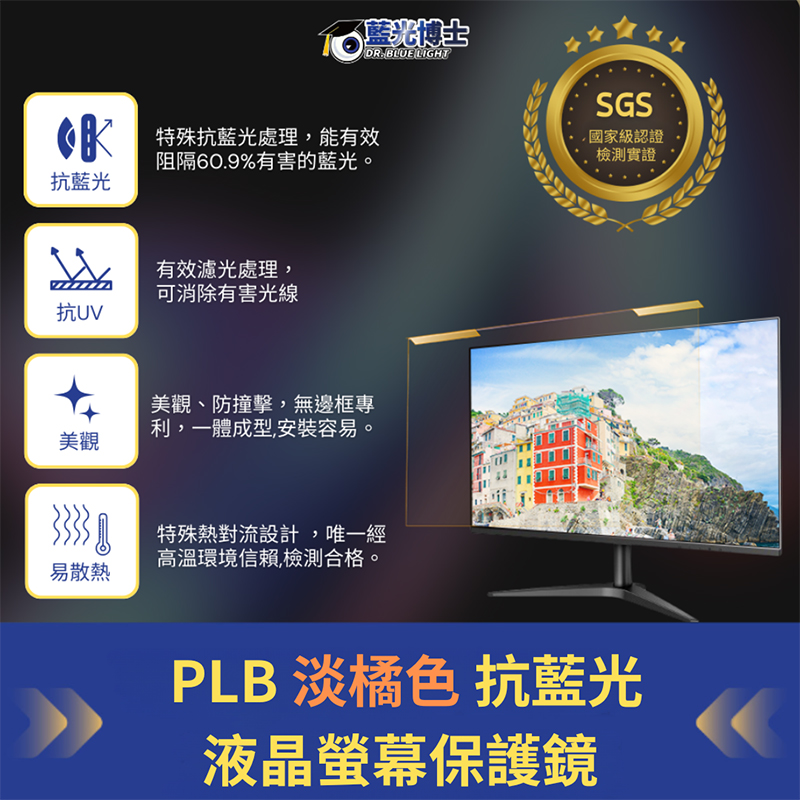 抗藍光功能:阻隔 60.9% 藍光,保護眼睛,經 SGS 檢測認證。