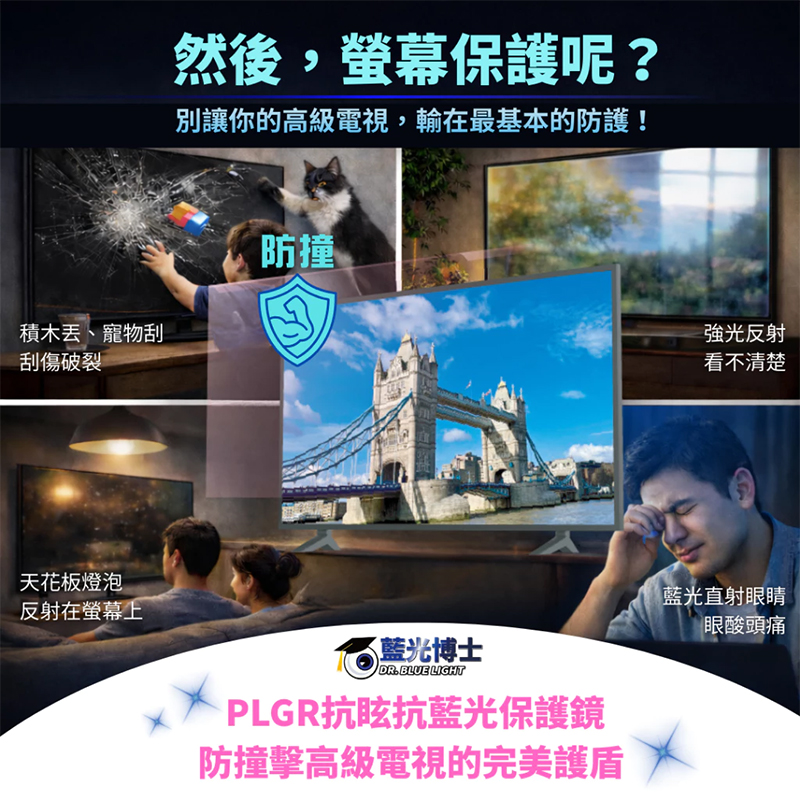 耐衝擊保護:高品質 PMMA 基材打造,具卓越的耐衝擊性能,防止因意外碰撞或兒童遊戲時的損壞,全面保護您的液晶電視面板。